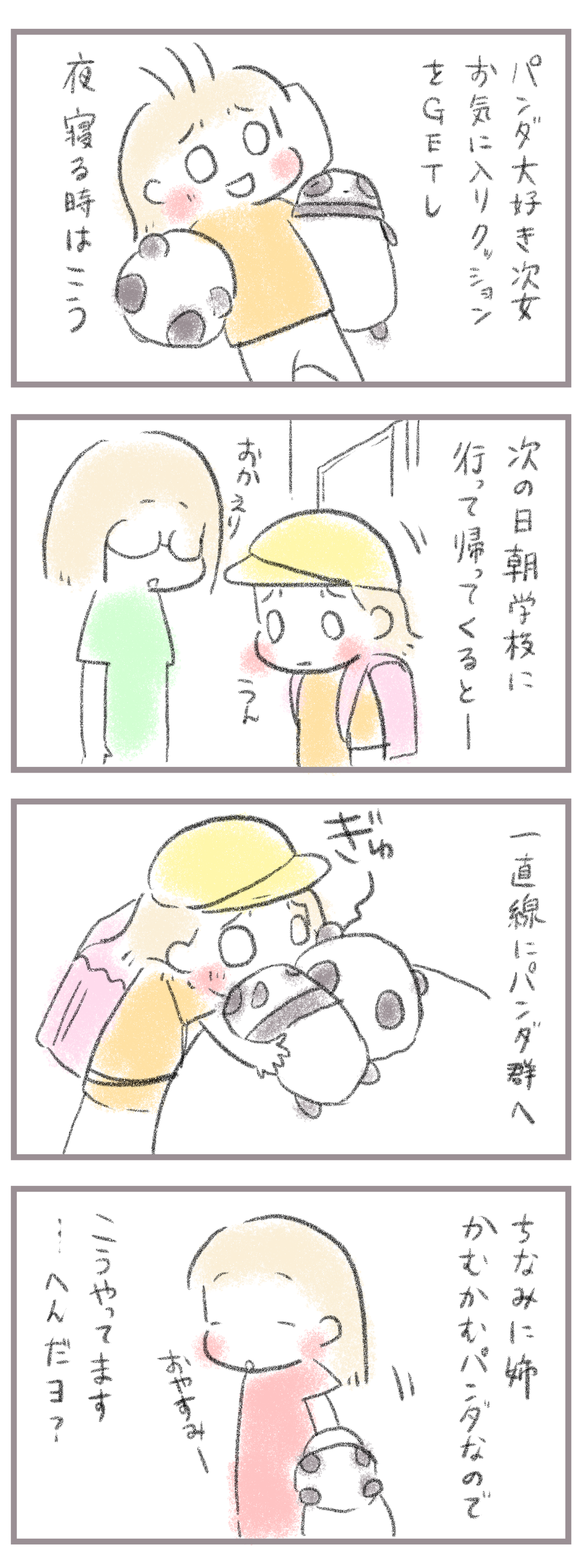 まさかの帰宅後ランドセルも降ろさずパンダへ直行。