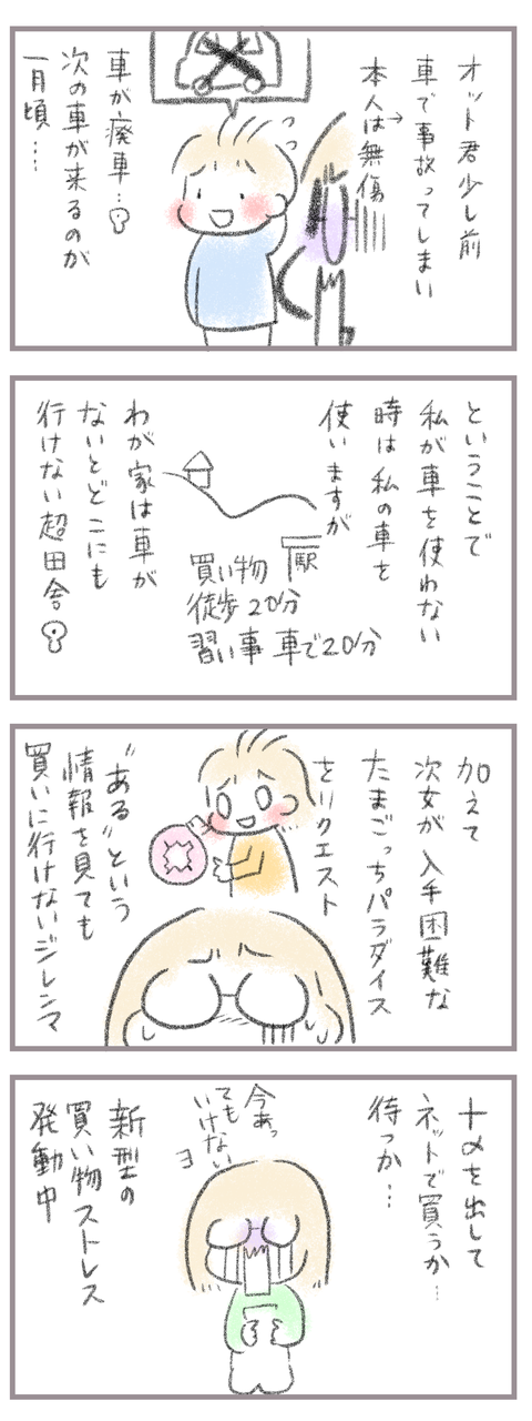 現代買い物ストレスの恐怖 2025年11月22日 きてくださってありがとうございます。10歳(小5)イチカと8歳(小2)ニコ、姉妹の母です。まさに新型の買い物ロス状況。今だからネットでなんでも買えると思ったら大違い。ほしいものが集中し、動かないとほしいものは手に入らない状況下。そんな中夫くんが車壊しました。廃 ... 続きを読む きてくださってありがとうございます。10歳(小5)イチカと8歳(小2)ニコ、姉妹の母です。まさに新型の買い物ロス状況。今だからネットでなんでも買えると思ったら大違い。ほしいものが集中し、動かないとほしいものは手に入らない状況下。そんな中夫くんが車壊しました。廃車です、ええ廃車。これには色々言いたいこともありますが最悪ほぼ誰にも害を与えることもなく、自分だけが貧乏くじを引いたので自業自得なんですが車使えないの辛い〜〜〜〜;;たまごっちにしても何にしてもゲリラ販売と言われる行ったらあったな状況が多くて、店側も殺到しないようにあまりネットに情報を出さないようにしてて…あとはクリスマス会のプレゼント用にボンボンドロップシールも探しててこれまた手に入らない…(その界隈の方ならよくご存知だと思いますが)もうね、色々現代ならではの買い物ストレスにハマってます。手に入れたいのに手に入らない…辛い…____________________姉妹ピアノインスタ作りました!長女のピアノ↓ 事情によりお子さんがピアノをやっている方のみの閲覧に変更しました次女のピアノ↓こちらはみなさん閲覧できる状態にしてます。あたらしい記事がアップされるとお知らせが届きます↓ ランキングに参加中よかったら一日一 回ぽちお願いします。にほんブログ村 タグ :#手に入れたいものが手に入らないストレス#いかないと手に入らない#ネット通販の敗退
