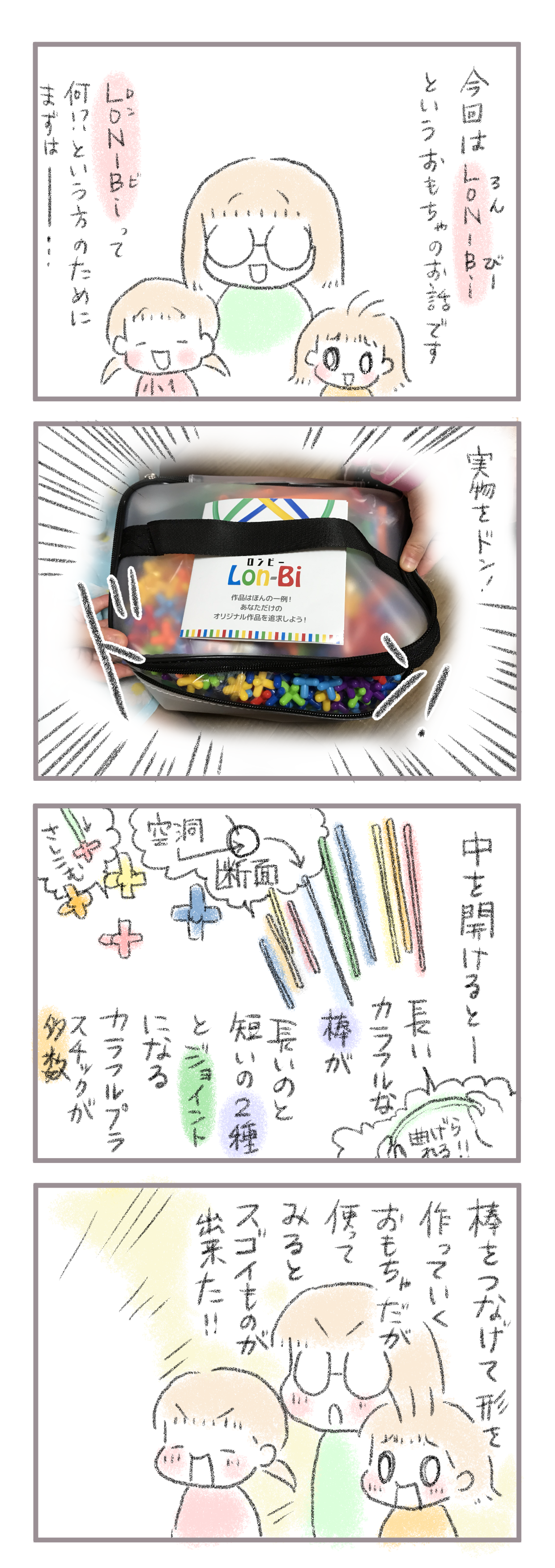 きてくださってありがとうございます。6歳(小1)イチカと3歳(年少)ニコ、姉妹の母です。 まずは開封の儀!Lon-Biを設置すると… ホイホイされてくる姉妹。カラフルなものってウキウキしますよね。 長女は見本のハートを見て早速自分も作り始め…(流石女子!) ...
