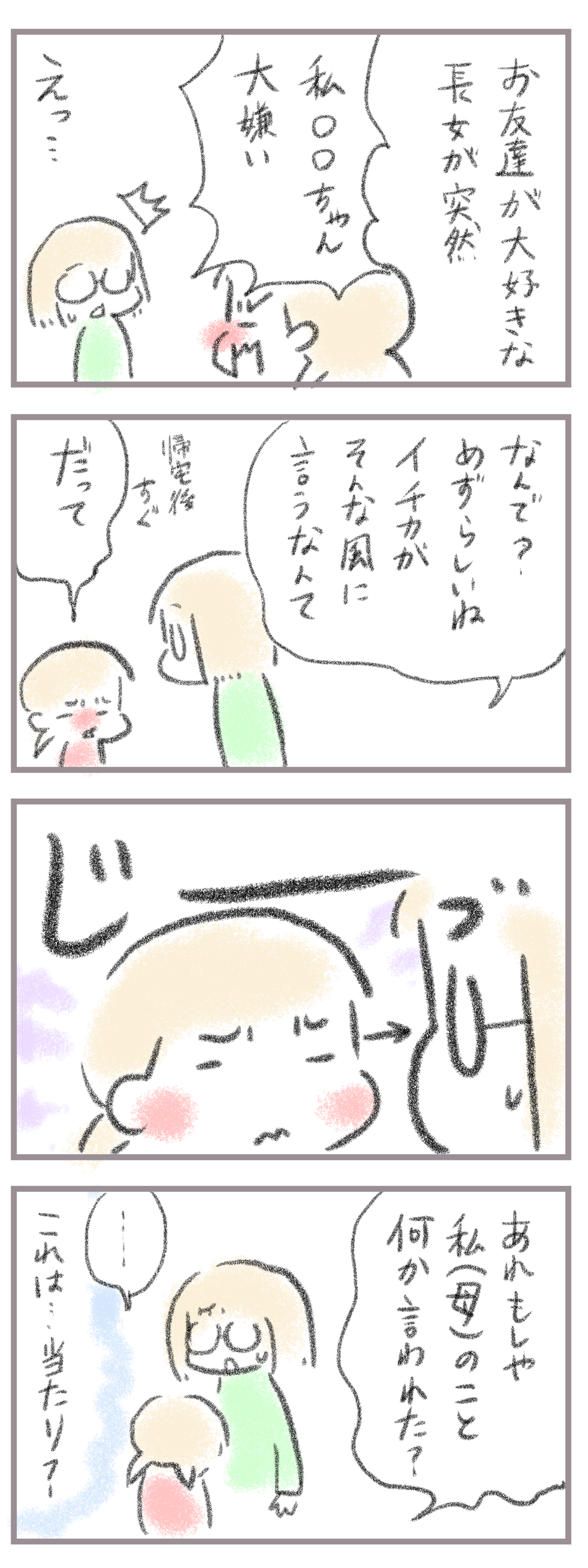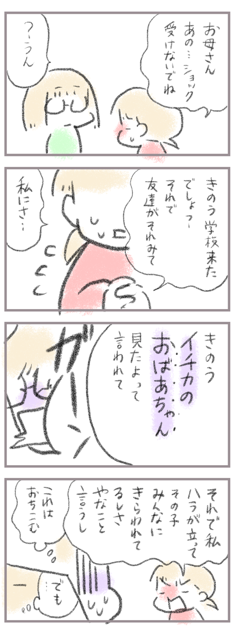 来てくださってありがとうございます。8歳(小3)イチカと6歳(年長)ニコ、姉妹の母です。本日も前回の続きの記事になります始めの記事↓ 前の記事↓ そう、人の基準は人それぞれ。「お母さん」「おばあちゃん」の違いは家庭によって様々。40代のおばあちゃんも普通にいる。 ...