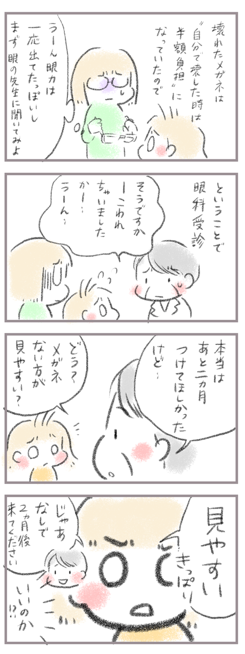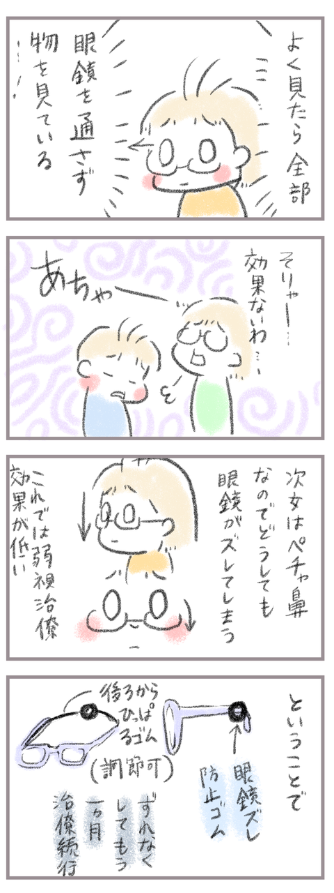 きてくださってありがとうございます。9歳(小4)イチカと7歳(小1)ニコ、姉妹の母です。弱視治療中に眼鏡を壊したニコ、「様子見の期間」だったので一応先生のところへ行ってみると次の3ヶ月目までなしで様子を見るとなった…その後… 様子見の2ヶ月の間に眼科検診で引っ ...