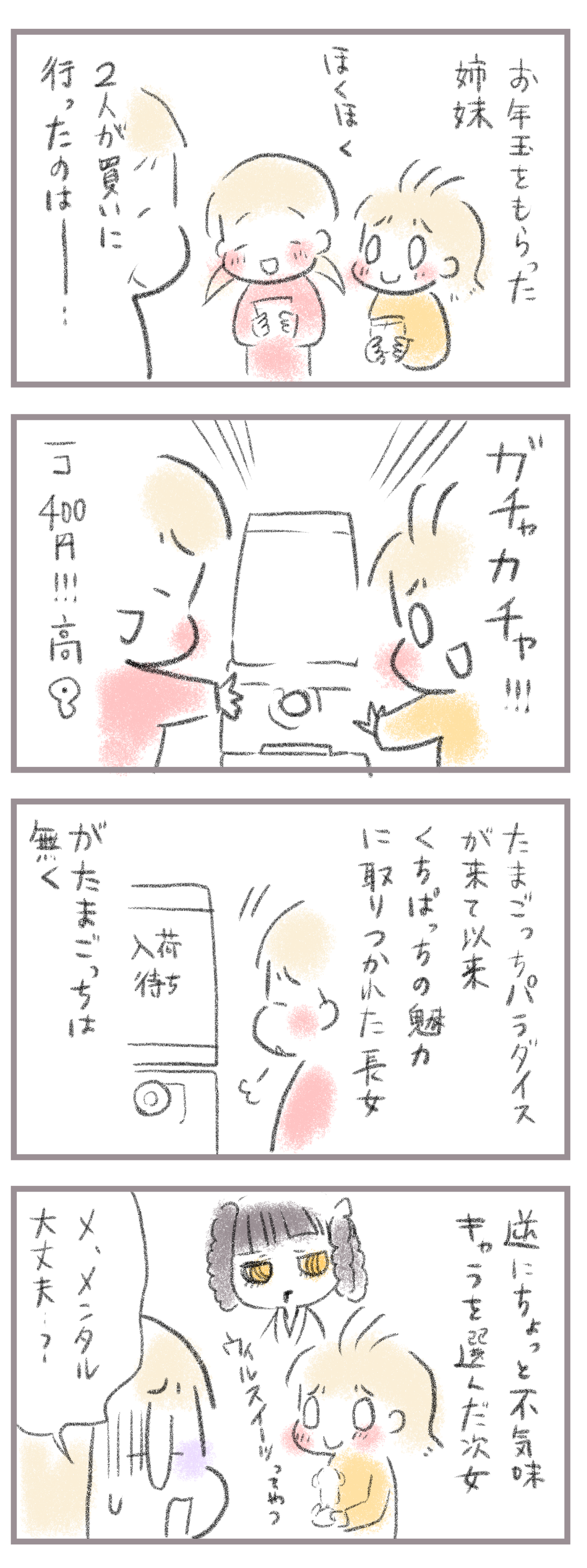 小学生のお年玉の使い道がダークだった 2026年01月07日 きてくださってありがとうございます。10歳(小5)イチカと8歳(小2)ニコ、姉妹の母です。お年玉の味を知った2人。ニコニコでガンガン欲しいものに資材投入してます。ニコが買ったのはウィルスイーツ…?ウィルスイーツ 2シリーズ フルコンプリートセット 初代+甘味処ノー ... 続きを読む きてくださってありがとうございます。10歳(小5)イチカと8歳(小2)ニコ、姉妹の母です。お年玉の味を知った2人。ニコニコでガンガン欲しいものに資材投入してます。ニコが買ったのはウィルスイーツ…?ウィルスイーツ 2シリーズ フルコンプリートセット 初代+甘味処ノーブランド品いやいや怖い怖い!!!目つきが!なんか口から出てるから!!!抑圧された心の叫びか…!?好きな色も黒だし…でもカミオジャパンさんのもぐにゃんが好きだったり…よくわからない次女の趣味のおはなしでした。いや怖いて…ところでこのガチャガチャ16歳以上指定なんですが3歳以上だし誤飲の心配もないし…やっぱりあれですか?怖いやつだからかな💦____________________姉妹ピアノインスタ作りました!長女のピアノ↓ 事情によりお子さんがピアノをやっている方のみの閲覧に変更しました次女のピアノ↓こちらはみなさん閲覧できる状態にしてます。あたらしい記事がアップされるとお知らせが届きます↓ ランキングに参加中よかったら一日一 回ぽちお願いします。にほんブログ村 タグ :#次女の趣味が怖い#ダークより#小2