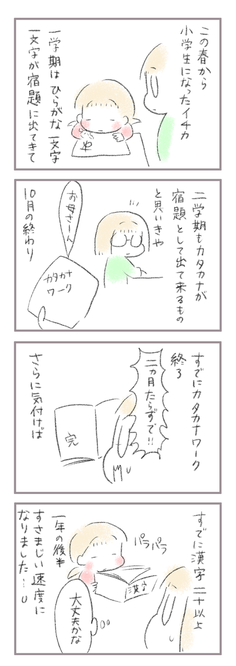 気づいたらもうカタカナ終わって漢字に突入してる小1。