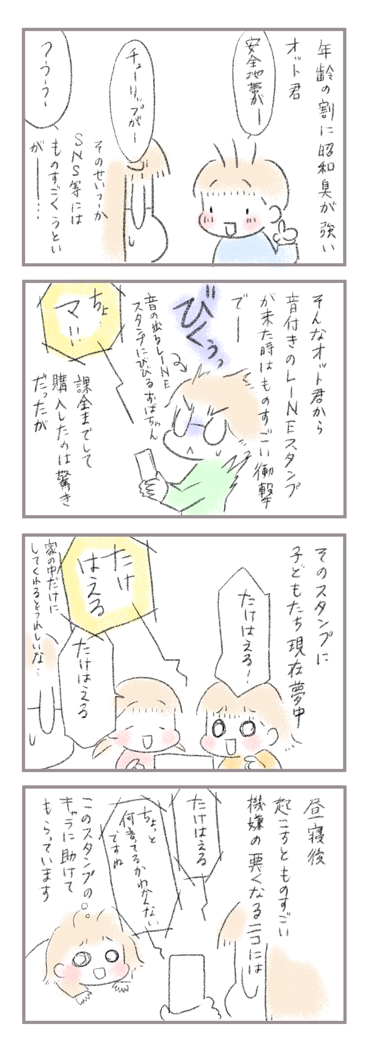 3歳児を昼寝から起こすときの我が家の方法 2020年12月20日 きてくださってありがとうございます。5歳(年長)イチカと3歳ニコ、姉妹の母です。早期英語教育のお話の途中ですが今回は普段の育児記事です。 いきなり送られてきたのはこのLINEスタンプ↓https://quan-inc.jp/characters/betakkuma/どこで見つけてきたのか最初はびっくり ... 続きを読む きてくださってありがとうございます。5歳(年長)イチカと3歳ニコ、姉妹の母です。早期英語教育のお話の途中ですが今回は普段の育児記事です。 いきなり送られてきたのはこのLINEスタンプ↓https://quan-inc.jp/characters/betakkuma/どこで見つけてきたのか最初はびっくりしました。お、音出たんだけど…!このスタンプが面白すぎて最近次女の昼寝を起こすときに使ってます。(動画は画面がチカチカするので小さい子に画面を凝視させないようにしてください) これがなるとなんかテンションが上がるようで。いつもはギャンギャン泣くんですがしばらくつけてると笑い出して遊び出します。もうしばらくお世話になります。ただお子様に変な言葉が出てくるのはご覚悟あれ^^;______________ 出産妊娠記録まとめ長女妊娠出産記録→■次女妊娠切迫早産記録→■トイレトレーニングのお話→◾️______________インスタグラムお休み中です→■ランキングに参加中よかったら一日一回ぽちお願いします。 にほんブログ村 タグ :#LINEスタンプ#オット君#音声付きはびっくりする