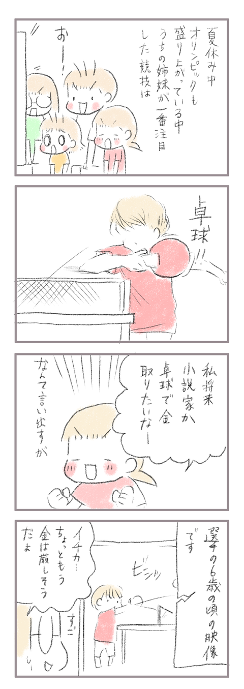 夢を見る子どもと現実を見る親 2021年08月06日 きてくださってありがとうございます。6歳(小1)イチカと4歳(年少)ニコ、姉妹の母です。オリンピックも後半戦、我が家の注目競技は… オリンピックの選手ってすごいんですね…6歳からビシバシ打ってました。い、イチカ、競技をやるのはいいけど流石に金までは…汗イヤイ ... 続きを読む きてくださってありがとうございます。6歳(小1)イチカと4歳(年少)ニコ、姉妹の母です。オリンピックも後半戦、我が家の注目競技は… オリンピックの選手ってすごいんですね…6歳からビシバシ打ってました。い、イチカ、競技をやるのはいいけど流石に金までは…汗イヤイヤ、夢は大事だけど…オリンピックはほんと夢の塊。選手の皆さんありがとう!___________ 出産妊娠記録まとめ長女妊娠出産記録→■次女妊娠切迫早産記録→■トイレトレーニングのお話→◾️______________インスタグラムお休み中です→■ランキングに参加中よかったら一日一回ぽちお願いします。 にほんブログ村 タグ :#オリンピック#小学一年生の夢