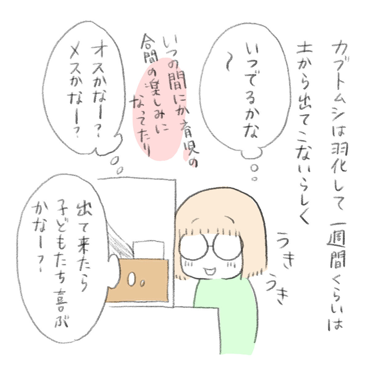 ネットで調べると羽化後1週間くらいは土から出てこないと書いている