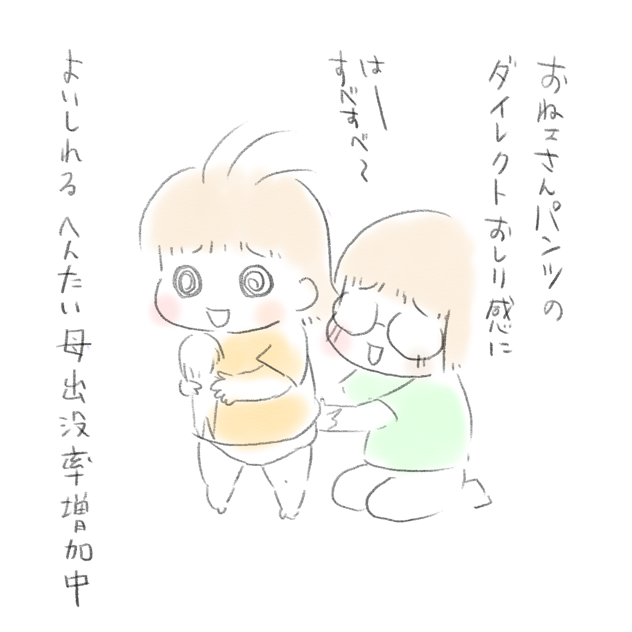 オールお姉さんパンツへ 2020年06月17日 見にきてくださってありがとうございます。5歳(年長)と3歳の姉妹の母です。 お姉さんパンツの触り心地っていいですよね〜^^すべすべすべ〜(変態です)娘がいや〜っていうまでは時々こっそりすべすべしようと思います。ニコ、お姉さんパンツ濡らさないように頑張って〜 ... 続きを読む 見にきてくださってありがとうございます。5歳(年長)と3歳の姉妹の母です。 お姉さんパンツの触り心地っていいですよね〜^^すべすべすべ〜(変態です)娘がいや〜っていうまでは時々こっそりすべすべしようと思います。ニコ、お姉さんパンツ濡らさないように頑張って〜〜〜______________ 出産妊娠記録まとめ長女妊娠出産記録→■次女妊娠切迫早産記録→■トイレトレーニングのお話→◾️______________インスタグラムお休み中です→■ランキングに参加中よかったら一日一回ぽちお願いします。 にほんブログ村 タグ :#トイレトレーニング#お姉さんパンツ#次女#3歳