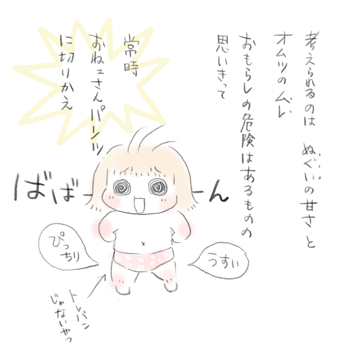 トイトレ後が本番 2020年06月23日 見にきてくださってありがとうございます。 5歳(年長)と3歳の姉妹の母です。 トイトレ後、外出時もお姉さんパンツにしている次女ですがトイトレ後が本番ですよね、いろいろ涙安定するまで少なくとも半年以上はトイレのお伺い立てるのは続けないといけない。長い、なぁ… ... 続きを読む 見にきてくださってありがとうございます。 5歳(年長)と3歳の姉妹の母です。 トイトレ後、外出時もお姉さんパンツにしている次女ですがトイトレ後が本番ですよね、いろいろ涙安定するまで少なくとも半年以上はトイレのお伺い立てるのは続けないといけない。長い、なぁ…______________ 出産妊娠記録まとめ長女妊娠出産記録→■次女妊娠切迫早産記録→■トイレトレーニングのお話→◾️______________インスタグラムお休み中です→■ランキングに参加中よかったら一日一回ぽちお願いします。 にほんブログ村 タグ :#トイレトレーニング#3歳#トイトレ後が大変