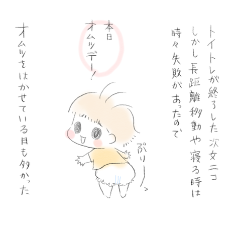 2歳11ヶ月トイトレ⑥〜5年3ヶ月に幕 2020年05月31日 見にきてくださってありがとうございます。5歳(年長)と2歳の姉妹の母です。3歳目前の次女のトイトレのお話の続きです。前回のお話→ ①、②、③ 、④、⑤ 次女、一度トイレに行けるようになってからは自分からほぼ全部申告するようになりました。夜はほぼほぼ漏らすこ ... 続きを読む 見にきてくださってありがとうございます。5歳(年長)と2歳の姉妹の母です。3歳目前の次女のトイトレのお話の続きです。前回のお話→ ①、②、③ 、④、⑤ 次女、一度トイレに行けるようになってからは自分からほぼ全部申告するようになりました。夜はほぼほぼ漏らすことがない状態で現在に至ります(一度幼稚園に行った夜だけ漏らしました)これは…スイッチが変わったらできるタイプ…?いまも移動等がある時はオムツを履かせてますがなんとかトイトレ完了、となりました。長女が生まれて5年3ヶ月、お世話になり続けたオムツに感謝です!______________ 出産妊娠記録まとめ長女妊娠出産記録→■次女妊娠切迫早産記録→■トイレトレーニングのお話→◾️______________インスタグラムお休み中です→■ランキングに参加中よかったら一日一回ぽちお願いします。 にほんブログ村 タグ :#2歳11ヶ月#トイレトレーニング#次女
