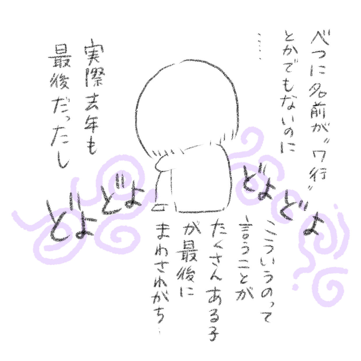 とにかく1番最後っていうところがめっちゃひっかかりました。