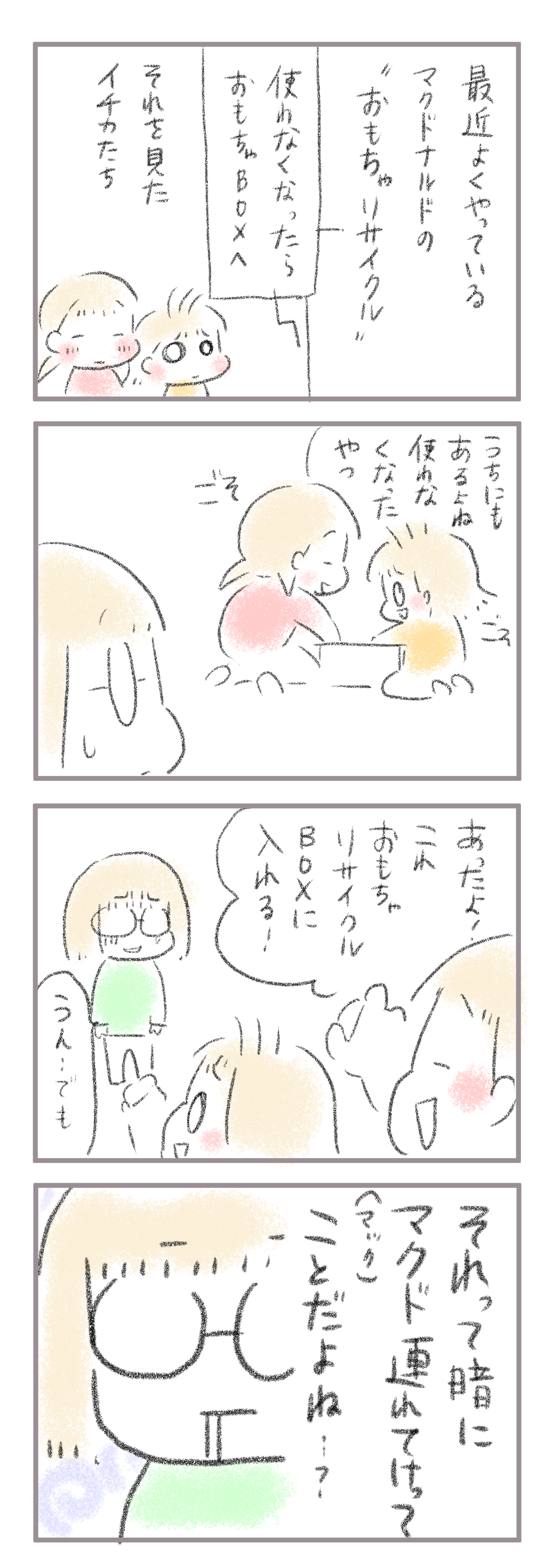 きてくださってありがとうございます。9歳(小3)イチカと6歳(年長)ニコ、姉妹の母です。前回の続きで例のハッピーセット騒動のお話です。1はこちら↓ 子どもを5時に叩き起こし、マクドナルドに行く親…なんかちょっとええんか?そこまでせなあかんか?という疑問の中決行 ...