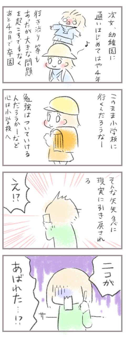 卒園前、問題行動発生1 2023年12月06日 きてくださってありがとうございます。8歳(小3)イチカと6歳(年長)ニコ、姉妹の母です。卒園まであと4ヶ月。あっという間に卒園だわ〜と思っていた矢先、幼稚園から電話。は、初めてきた〜〜〜ーー;今までは〇〇から落ちたとかそういう報告ばかりで先日も次女はそんなに ... 続きを読む きてくださってありがとうございます。8歳(小3)イチカと6歳(年長)ニコ、姉妹の母です。卒園まであと4ヶ月。あっという間に卒園だわ〜と思っていた矢先、幼稚園から電話。は、初めてきた〜〜〜ーー;今までは〇〇から落ちたとかそういう報告ばかりで先日も次女はそんなに問題ないよ〜と言われたばかりで滝汗実は長女も年長の時問題を起こしてまして… 我が家の子は幼稚園で一回問題起こさないと卒園できないシステムなのか…?ちなみに次女は結構ヤバい感じでした。続き↓ ____________________姉妹ピアノインスタ作りました!長女のピアノ↓ 事情によりお子さんがピアノをやっている方のみの閲覧に変更しました次女のピアノ↓こちらはみなさん閲覧できる状態にしてます。↑ブログリーダーは2023年12月末終了します。よければそれに変わるアプリ登録ができるようになっていますので登録していただければ、と思います↓ ランキングに参加中よかったら一日一 回ぽちお願いします。にほんブログ村 タグ :#幼稚園#卒園前#年長#問題行動