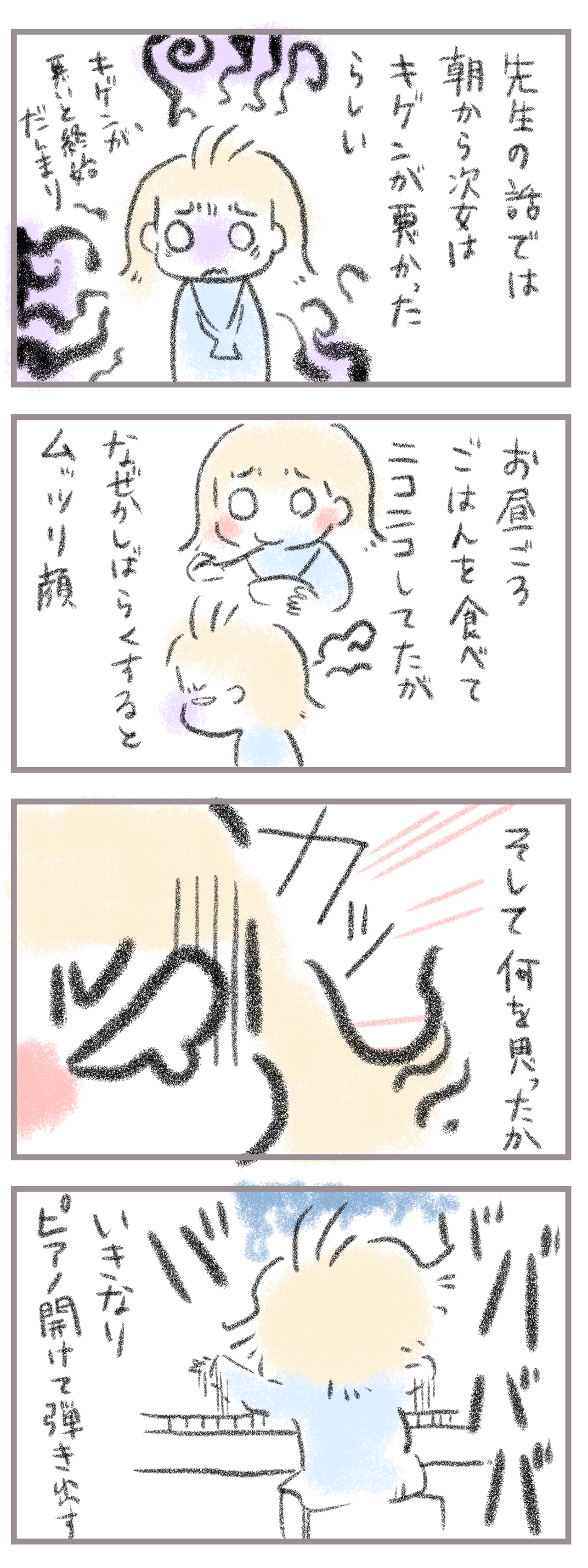 卒園前、問題行動発生2 2023年12月07日 きてくださってありがとうございます。8歳(小3)イチカと6歳(年長)ニコ、姉妹の母です。今回は前回の続きの次女が卒園前、ついに園から電話をもらってしまうことに・・・理由は・・・前のお話↓ 次女は機嫌によってものすごく態度が変わります汗その日はとにかく朝から機 ... 続きを読む きてくださってありがとうございます。8歳(小3)イチカと6歳(年長)ニコ、姉妹の母です。今回は前回の続きの次女が卒園前、ついに園から電話をもらってしまうことに・・・理由は・・・前のお話↓ 次女は機嫌によってものすごく態度が変わります汗その日はとにかく朝から機嫌が悪かったようで。お昼頃には戻っていたけど再びしばらくすると急降下。そして突然、ピアノ弾き出した。え!?続きます。____________________姉妹ピアノインスタ作りました!長女のピアノ↓ 事情によりお子さんがピアノをやっている方のみの閲覧に変更しました次女のピアノ↓こちらはみなさん閲覧できる状態にしてます。↑ブログリーダーは2023年12月末終了します。よければそれに変わるアプリ登録ができるようになっていますので登録していただければ、と思います↓ ランキングに参加中よかったら一日一 回ぽちお願いします。にほんブログ村 タグ :#次女#問題行動#卒園前に電話#何があった…⁉︎