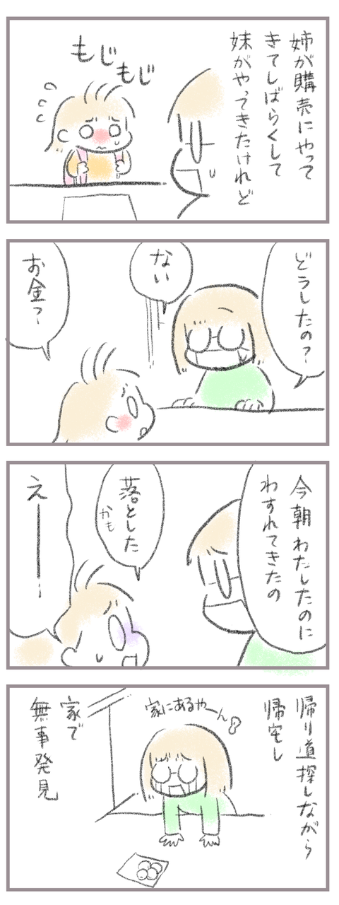 学校購買で見た姉妹関係・後編 2025年01月11日 来てくださってありがとうございます。9歳(小4)イチカと7歳(小1)ニコ、姉妹の母です。前回の続きで年明け一発目。姉妹で購買に行くはずでしたが…姉だけやってきた…なぜ?(前の記事↓) 小1のあるある…朝渡して、学校に先に出た母。その後色々やってて忘れたようで… ... 続きを読む 来てくださってありがとうございます。9歳(小4)イチカと7歳(小1)ニコ、姉妹の母です。前回の続きで年明け一発目。姉妹で購買に行くはずでしたが…姉だけやってきた…なぜ?(前の記事↓) 小1のあるある…朝渡して、学校に先に出た母。その後色々やってて忘れたようで…泣くしかない涙また購買の空いてる日を狙ってもって行ってもらいます。____________________姉妹ピアノインスタ作りました!長女のピアノ↓ 事情によりお子さんがピアノをやっている方のみの閲覧に変更しました次女のピアノ↓こちらはみなさん閲覧できる状態にしてます。あたらしい記事がアップされるとお知らせが届きます↓ ランキングに参加中よかったら一日一 回ぽちお願いします。にほんブログ村 タグ :#購買#姉妹関係#小1あるある