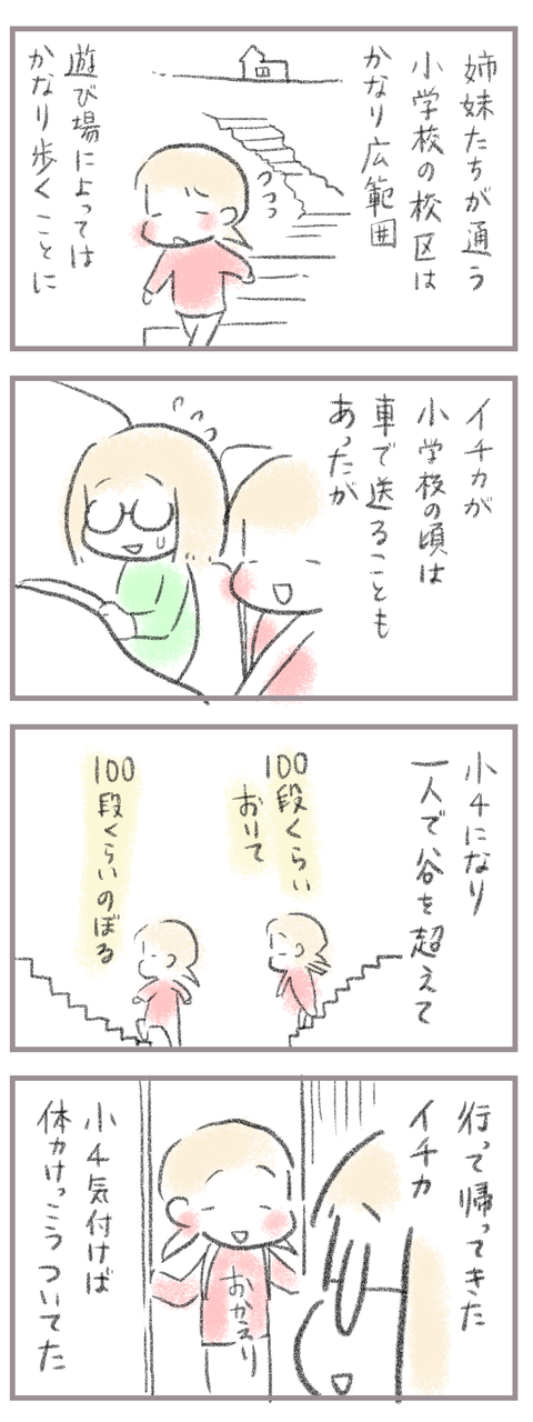 気がつくと子どもは結構なんでもできてる 2025年01月15日 きてくださってありがとうございます。9歳(小4)イチカと7歳(小1)ニコ、姉妹の母です。普通に谷の向こうの公園まで歩いて行けるようになった小4。すごいな〜これからもっともっと広範囲の場所に1人でいけるようになるんだなぁと思うと喜びとほんの少し寂しさの残るお話で ... 続きを読む きてくださってありがとうございます。9歳(小4)イチカと7歳(小1)ニコ、姉妹の母です。普通に谷の向こうの公園まで歩いて行けるようになった小4。すごいな〜これからもっともっと広範囲の場所に1人でいけるようになるんだなぁと思うと喜びとほんの少し寂しさの残るお話でした。____________________姉妹ピアノインスタ作りました!長女のピアノ↓ 事情によりお子さんがピアノをやっている方のみの閲覧に変更しました次女のピアノ↓こちらはみなさん閲覧できる状態にしてます。あたらしい記事がアップされるとお知らせが届きます↓ ランキングに参加中よかったら一日一 回ぽちお願いします。にほんブログ村 タグ :#子供の成長#遠いとこまで歩いて行けるようになった#小学校