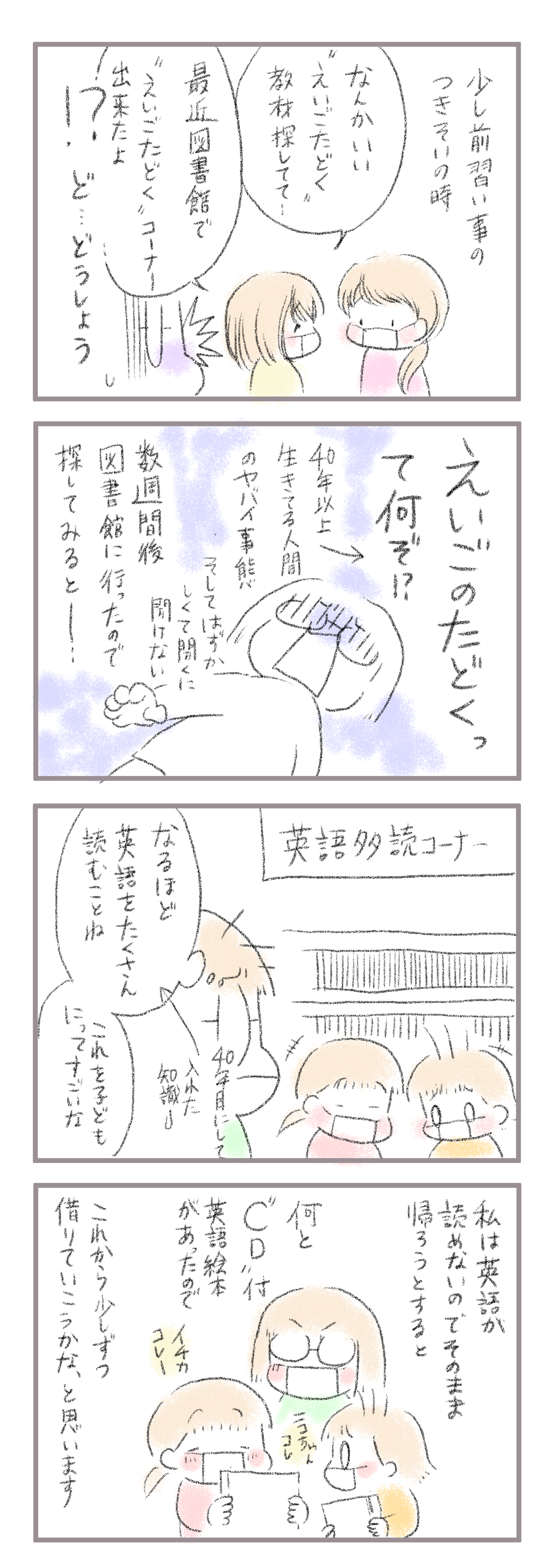 来て下さってありがとうございます。5歳(年長)イチカと3歳ニコ、姉妹の母です。以前英語教育のお話をしましたが(初めの記事→◾️)オンライン英会話の話を教えてもらったママさんの会話を聞いた時のこと… すいません…「英語多読」人生40年以上全く縁がなかったので最 ...