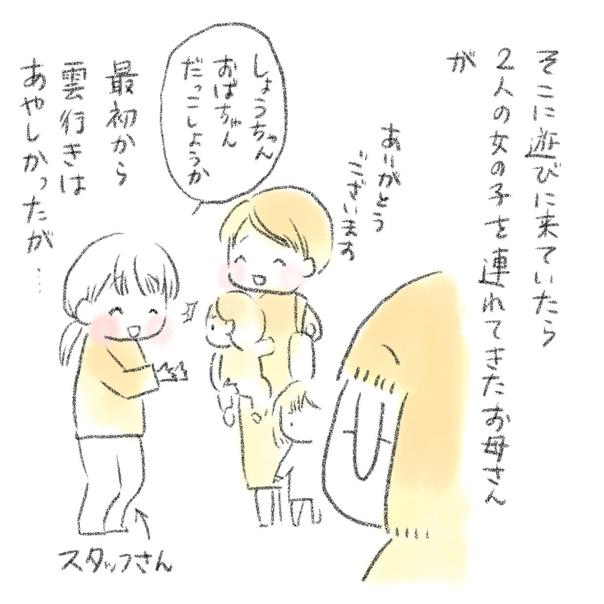 見てくださってありがとうございます。週末はお楽しみが待っていてちょっぴりウキウキの3歳と1歳の姉妹の母です。最近移動手段を手に入れたので児童館に頻繁に出向くようになったんですがそこでの出来事です。 常時2人のスタッフさんがいて子供の面倒を一緒に見てくれて大 ...