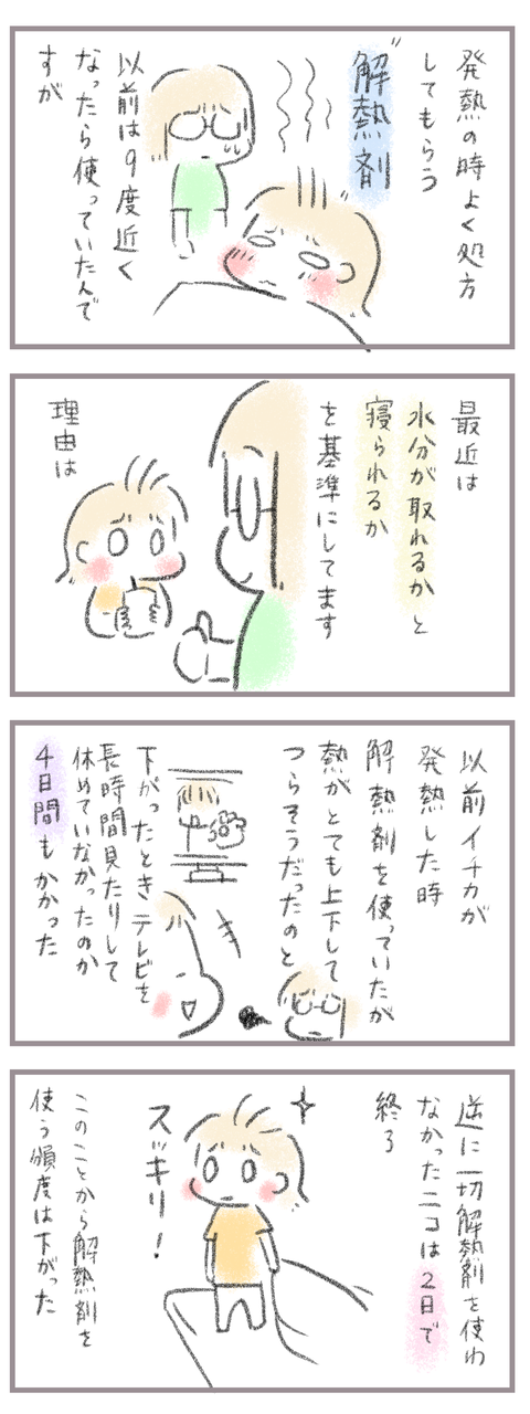 ただイチカが熱を出した時に使って以来解熱剤は極力使わないようにしました。
